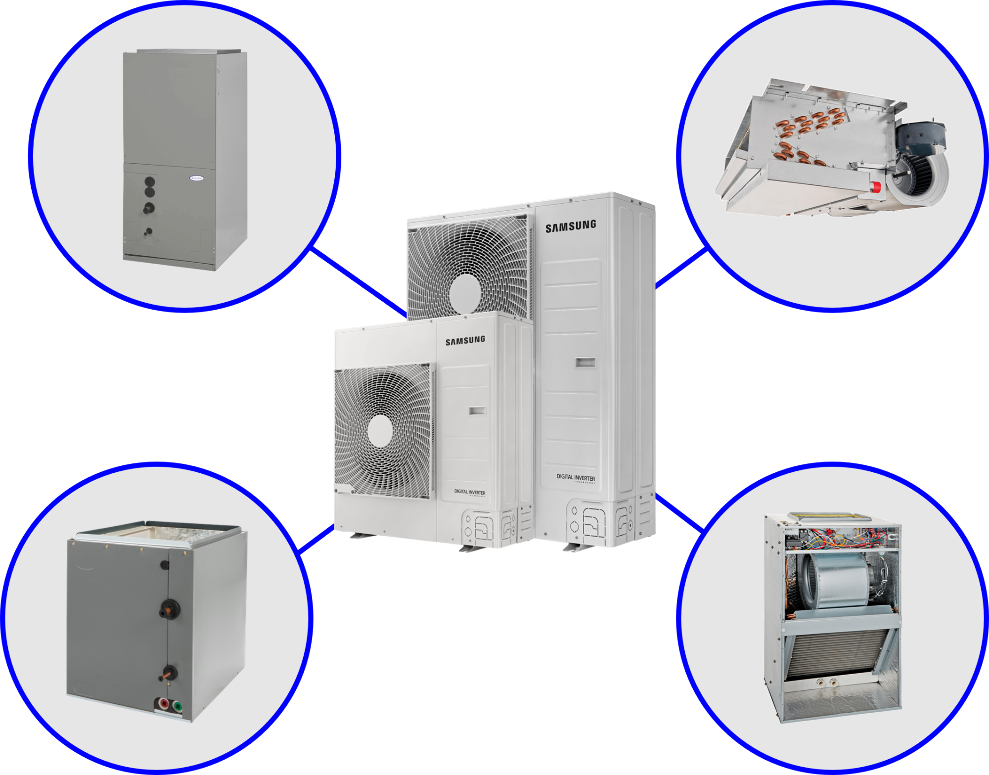 - Control with a standard 24VAC thermostat or a 2-wire Samsung communicating wired controller